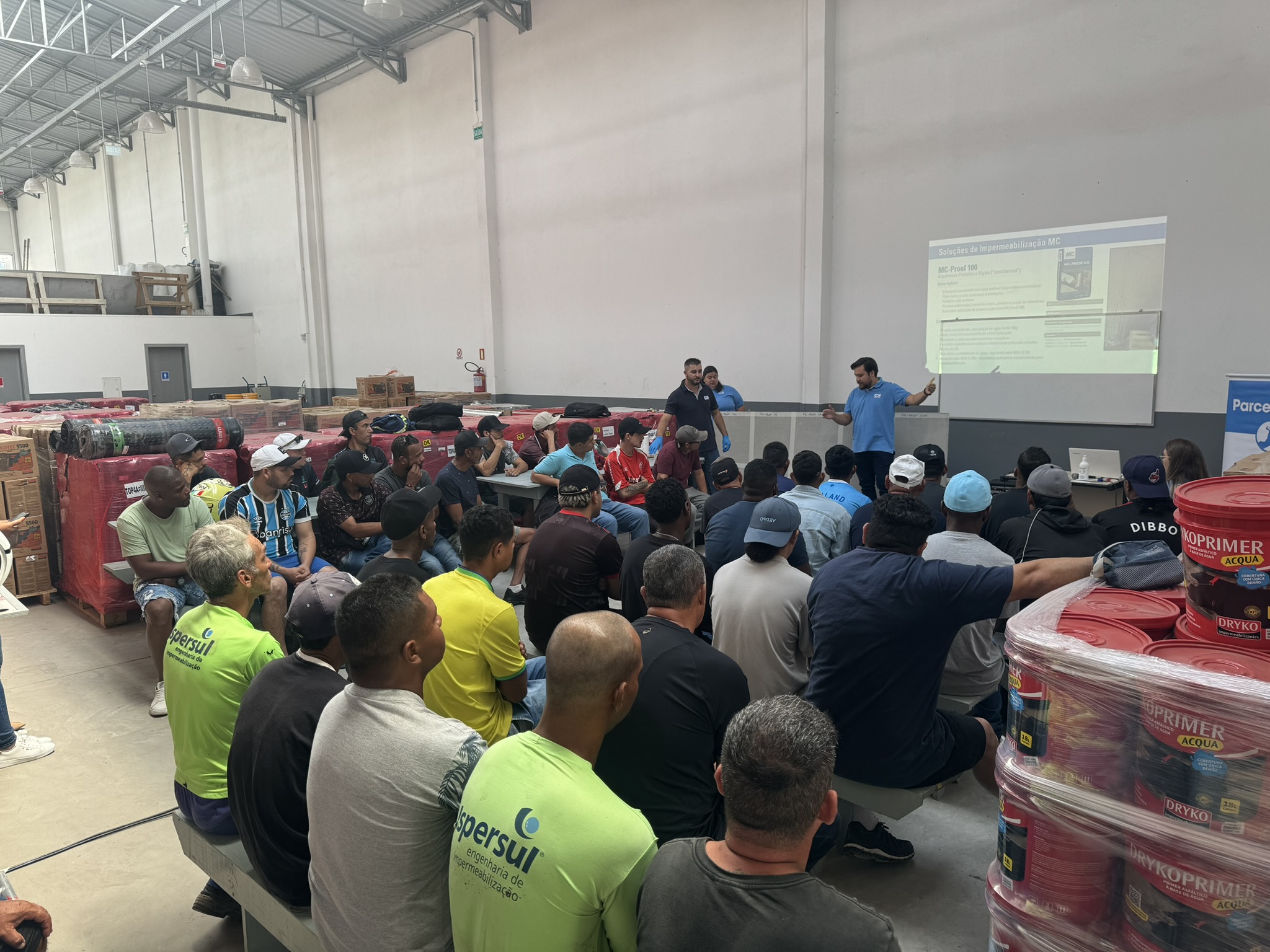 No dia 26/03/24 tivemos nosso 1º ciclo de treinamento do ano, com a equipe da @mcbauchemiebrasil. Um dia inteiro de treinamento “mão na massa” com os principais produtos que utilizamos em nossas obras. Uma troca de experiências fantástica, para capacitar ainda mais nosso time. Nosso muito obrigado à MC, e a todo nosso time.