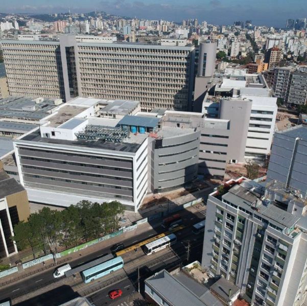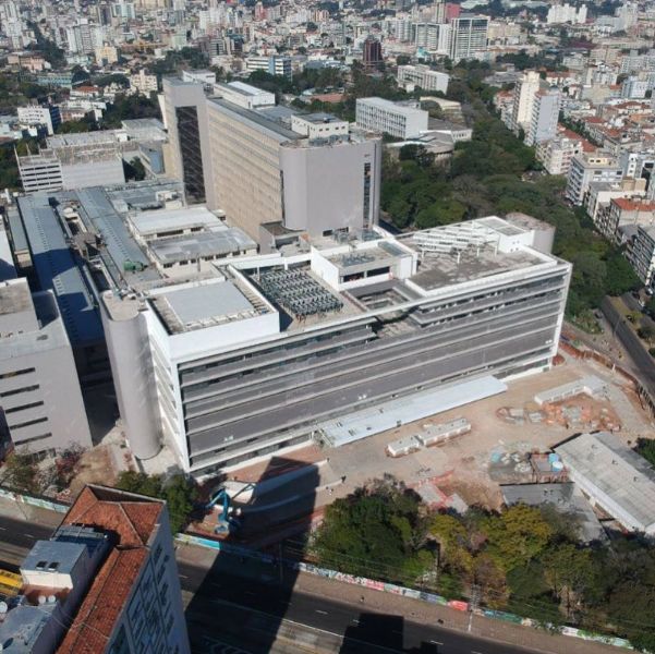 Está quase pronta a ampliação do Hospital de Clínicas de Porto Alegre, que está mudando a paisagem da cidade, e ampliando substancialmente o atendimento social da área da saúde. Desde 2015 mantivemos equipes permanentes no empreendimento, que aplicaram mais de 60.000m2 de mantas asfálticas, 40 toneladas de asfalto modificado, 10 toneladas de primer base água, 43 toneladas de argamassas elastoméricas, 18 toneladas de argamassas poliméricas e 16.500m2 de painéis extrudados XPS 25mm.